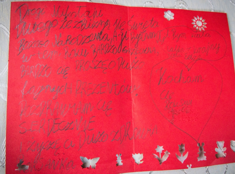 Gdy dostałam te karteczki, załamałam się. Chciałam odwołać całą akcję, skasować wydarzenie z Facebooka i odpisać tym dzieciom w imieniu Świętego Mikołaja, że wcale nie istnieję i nic nie dostaną. Prosząc o listy miałam cichą nadzieję, że dziecko A poprosi o książkę, dziecko B o farby, a dziecko C o czekoladę. Nie przewidziałam jednego – dziecko zapytane 'jakie masz gwiazdkowe marzenie’ nie będzie myślało o tym, że ma się zmieścić w 20 złotych, bo przecież Mikołaj nie istnieje a prezenty robią biedni studenci. Nie. Dziecko zapytane o jego marzenie, napisze swoje marzenie.
