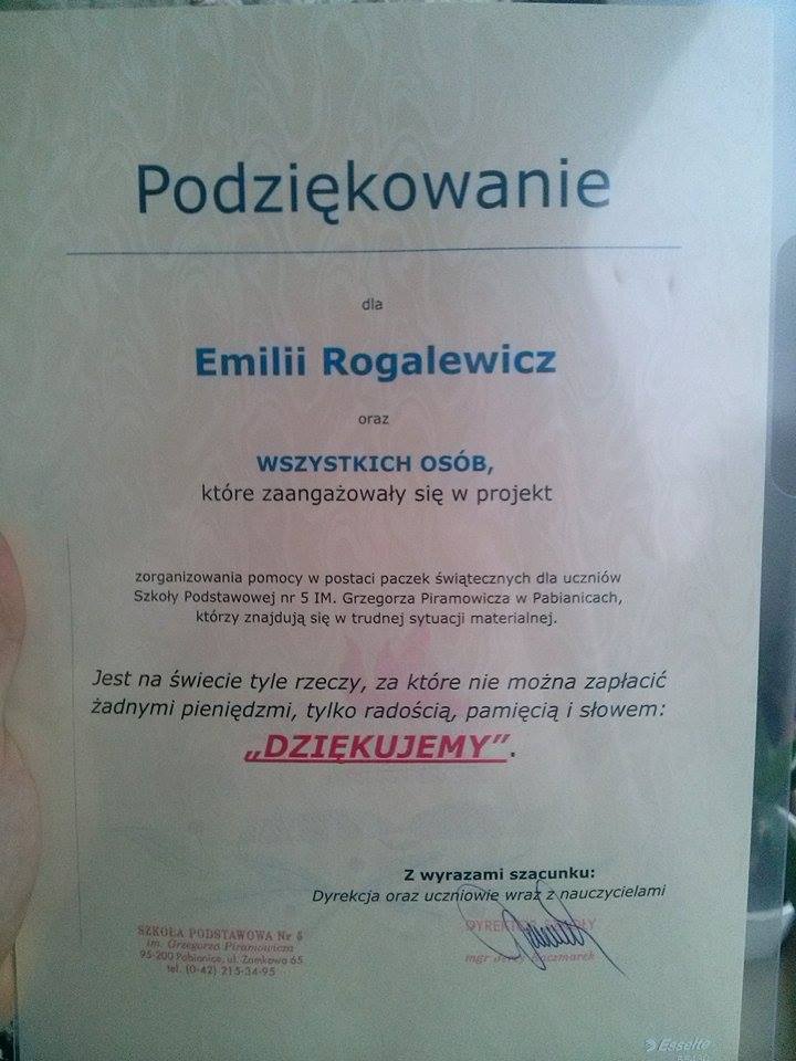 Poprzeczkę postawiliśmy sobie wysoko. Czasu było mało, bo pisałam pracę inżynierską, a na początku grudnia leciałam na Kanary. Na szczęście z Waszą pomocą wszystko znowu poszło sprawnie. Mimo że paczki były przeznaczone dla dzieci z Pabianic i pewnie większość z Was nawet nie wie, gdzie to jest, zaryzykuję stwierdzeniem, że prezenty robiła cała Polska. Chciałabym w szczególności podziękować Antkowi za zbiórkę w Krakowie, panu Antoniemu, wujkowi Antka – za ogromną pomoc przy zakupie przyborów szkolnych i zabawek dla dzieci; Magdzie która odbierała rzeczy w Łodzi, każdemu kto włączył się do akcji – czy to przelewem, czy przyniesieniem rzeczy, czy choćby promocją wydarzenia na Facebooku. W szczególności chciałabym napisać ludziom z Wrocławia, że Was kocham – to Wy jak zwykle pobiliście rekord!